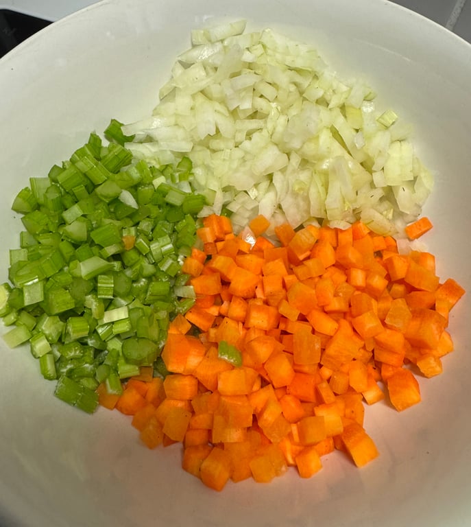 Every Bolognese Ragu for me starts with preparation of soffritto. Which simply means cubing onion, celery sticks and carrots.