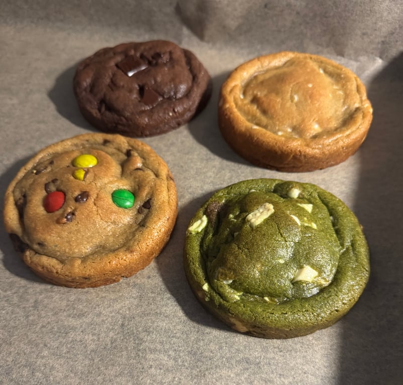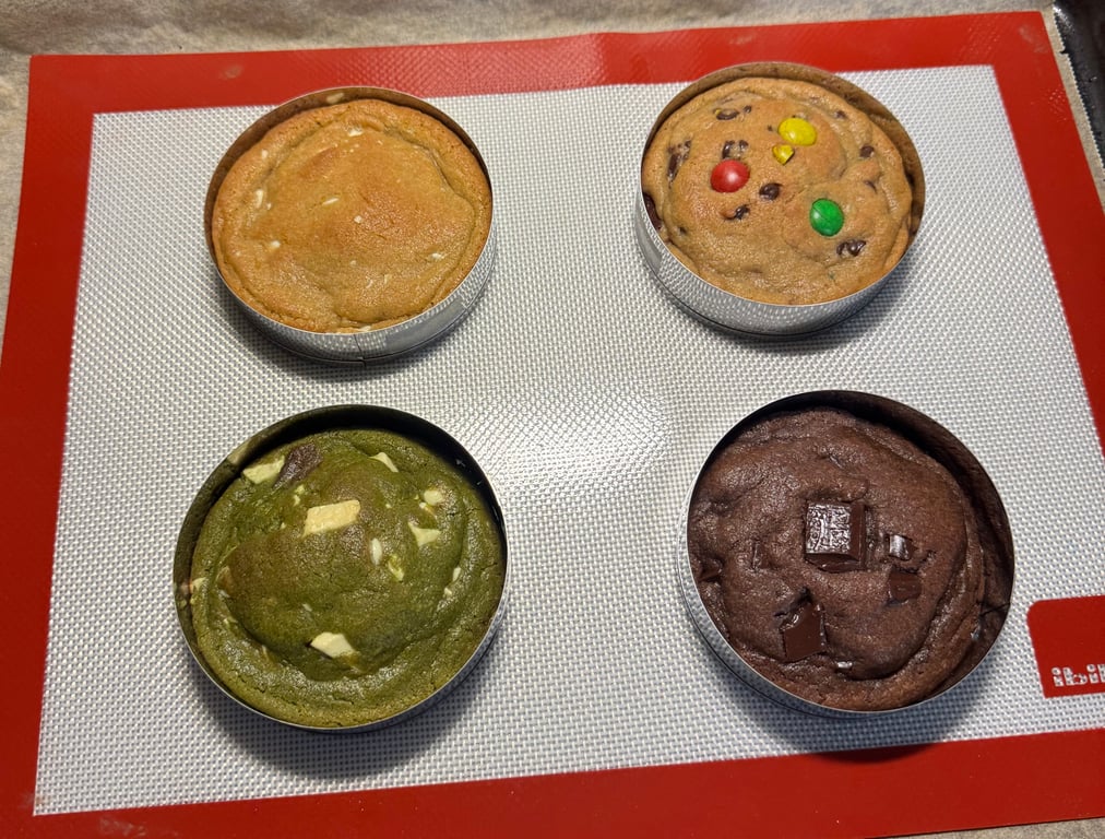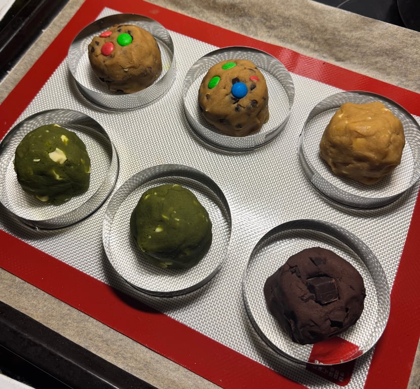 After mixing your variants, divide them into 130-140g balls for cookies that will be 10cm in diameter.